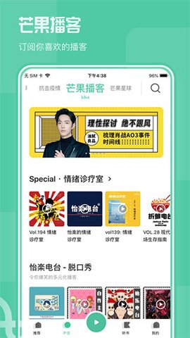 5、芒果动听高级版App已经入驻了播客电台湖南,它提供了主编精选的内容,让你实时了解身边的事情。