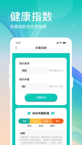 1、此外全民计步还记录体重和BMI指数,让您可以清楚地查看一周或一个月跑步健身后体重的变化。