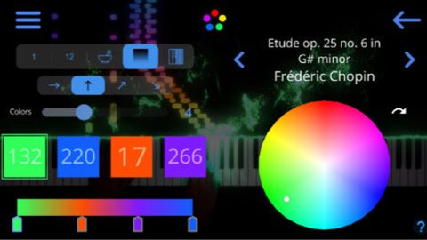1、用户可以为12种音高中的每一种选择一种颜色,当音符播放时,应用程序会使用为该音高选择的颜色来可视化每个音符。