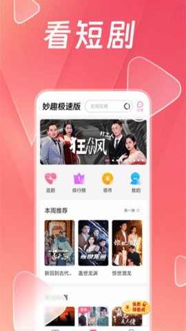 1、作为一款专门用来看短剧的APP,妙趣极速版拥有丰富多样的短剧影视资源,用户可以在这里找到全网最热门的短剧影视作品。