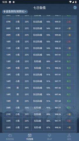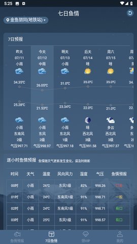 4、鱼情预报App是一款非常好用的软件,支持手动定位和GPS定位,可以准确获取当前位置的天气信息。