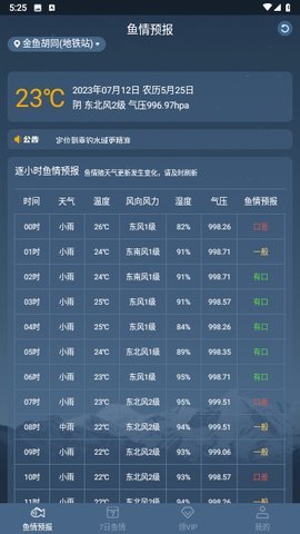 2、您可以根据每个小时的天气预报来选择最佳的钓鱼,提高钓鱼的成功率。