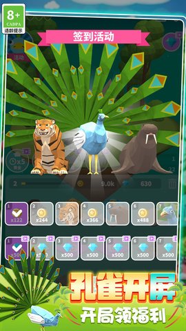 1、玩家可以通过合成不同的动物,养育自己的独特动物,提高它们的属性和等级,设计动物园的布局,吸引游客的到来。