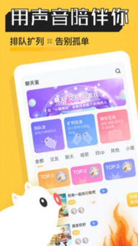 2、在多人语音聊天室中,你可以进行实时声音速配,与海量优质高颜值的大神配对,进行语音连麦、K歌点唱、相亲娱乐、扩列玩伴等活动,用声音触达社交。