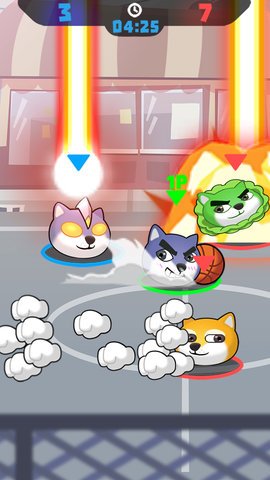 2、投篮冠军是一款魔性欢乐的狗头挑战游戏,玩家将控制狗狗进行一场无规则的2v2篮球比赛。