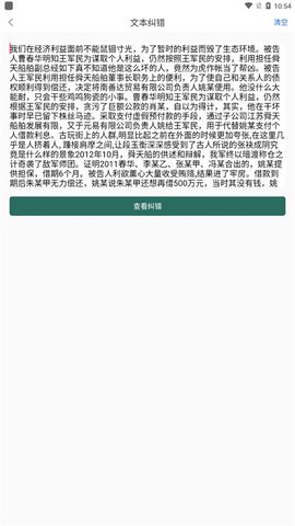 2、不论是校对任何文章内容,这都是一个很好的选择!用户只需点击文字录入功能,将文章内容复制进去,然后点击查看纠错,就可以帮助用户查找文档中的所有打字错误以及错误的标点符号。