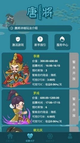2、我们建议大家选择能够让你赚钱的唐将,因为购买唐将也需要成本。