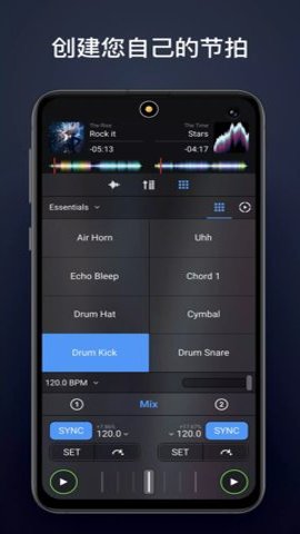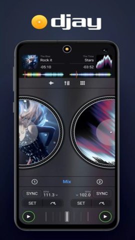 2、djay是一款流行的音乐混音软件,适用于iOS和Android操作系统。
