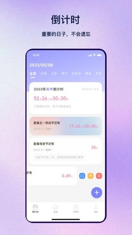 - 倒计时提醒:软件会提供及时的提醒,帮助用户不错过任何一个重要的纪念日,让感动时刻更加珍贵。