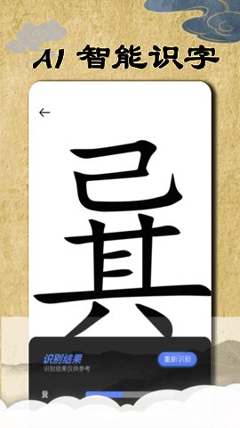 2、它是在康熙字典的基础上专为古汉语爱好者设计的汉字词典查询软件,具有简洁、快速、准确、详细的特点,并且支持拍照识字。