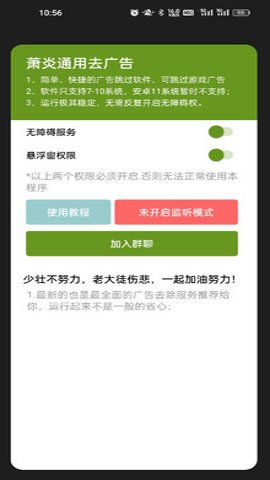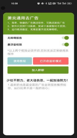 3、萧炎通用去广告是一款简单快捷的软件工具,用户只需开启一次无障碍授权即可使用,对手机安全无危害。