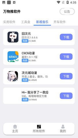 4、除了实用软件,万物推软件库app还提供了丰富的影视音乐资源。
