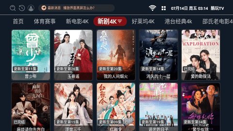4、酷玩TV电视版的界面设计非常合理,每个分类下又分为多个子分类,让用户更快捷地浏览到自己喜欢的内容。