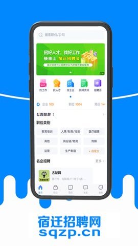 1、宿迁招聘网是一款功能强大的人才招聘应用。