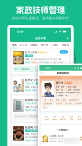 1、同时该APP还提供了丰富的技师资料,用户可以清晰地了解技师的情况,选择合适的家政服务人员。