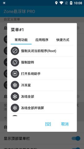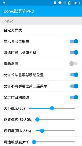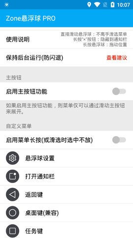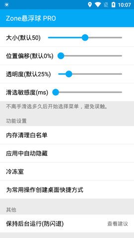 Zone悬浮球是一款应用,它具有许多实用的功能。你可以通过长按菜单键来移动图标的位置,这样可以更方便地使用。此外通过应用内的百分比条,你可以自定义设置图标所占面积的大小、透明度和灵敏程度。还可以自定义菜单,包括常用操作、打开APP和快捷方式等。常用功能方面,Zone悬浮球提供了手电筒、一键锁屏和内存清理等实用功能。而特色功能方面,它还包括冷冻室、强制屏幕旋转、无Root截屏(Android0+)、关闭前台应用(Root)和菜单键(Root)等功能。此外Zone悬浮球还支持标准快捷方式,包括系统功能如无Root系统桌面键、任务键、返回键和打开通知栏等。与其他类似应用不同的是,Zone悬浮球不需要root权限,只需开启辅助功能权限就能正常工作。它会在屏幕边生成一个半透明的「Z」图标,点击图标并滑动手指到对应的功能按键上即可完成操作。除了以上功能,Zone悬浮球还支持打开特定的APP,如冷冻室打开相机调用系统(语音)助手,云音乐、听歌识曲等。此外它还能被动获取快捷方式,比如在扫一扫界面点击右上角三点将扫一扫添加到桌面,Zone悬浮球会捕获此快捷方式并显示通知。另外一键锁屏功能也非常方便,可以快速锁定屏幕。智能贴边半透功能可以不打扰正常屏幕显示内容,而不离手滑选菜单则为大屏手机提供了全新的手势滑动操控体验。对于Android0+版本的用户,Zone悬浮球还支持电源键菜单和截屏功能。而PRO版本则提供了更多自定义样式和第二层菜单的选项,还可以选择应用中自动隐藏等功能。Zone悬浮球PRO版本的所有功能都是免费的,用户可以根据自己的需求来自定义每个按钮的功能。Zone悬浮球是一款快速切换应用的实用小工具,而PRO版本则提供了更多高级功能,并且所有内容都是完全免费使用的。无论是在设置之后在桌面显示悬浮球,还是通过点击悬浮球来快速设置各种功能,Zone悬浮球都能为用户带来便利和高效的使用体验。