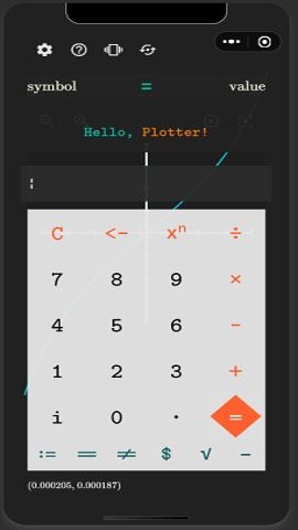 1、在Plotter的界面中,中间的函数图像坐标轴和准星可以通过单指移动坐标轴,双指缩放坐标轴的方式来进行图像的调整和查看。