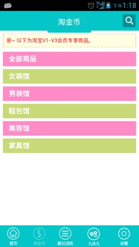 3、此外淘打折还提供了类目浏览功能,省去了繁琐的搜索过程,让用户可以快速直达所需商品类目。