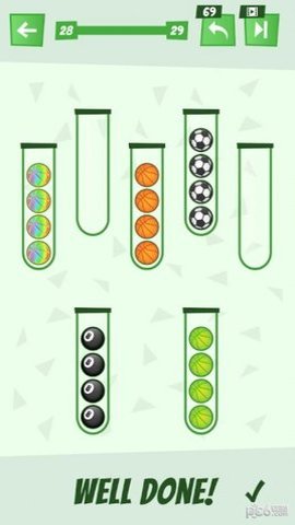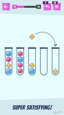 2、通过放入同色小球到试管中,挑战快速完成,培养玩家的反应能力和观察力。