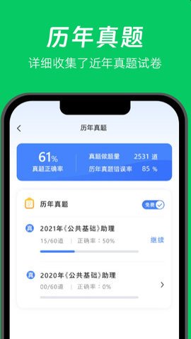 2、它是一款职业考试必备的在线题库APP,精选了海量的题库,其中包含了历年来的真题,保证用户能够得到最新、最全面的考试资料。
