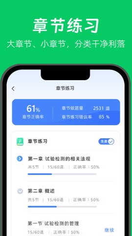 2、章节练习、历年真题、随机练习等做题模块一应俱全,用户可以根据自己的需求选择相应的模块进行练习。