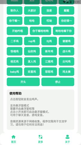 鸡乐盒0是一款应用程序,它的使用范围有一定的限制。该应用仅限用于交流学习,不能用于商业用途。鸡乐盒0则是一款功能强大、趣味性十足的应用程序,它能够帮助用户在聊天和游戏中更好地表达自己。不仅如此,鸡乐盒0还能够为用户提供创意、搞怪有趣的语音包资源,让用户在聊天或游戏中使用。这个应用还支持悬浮窗模式,用户可以将其化身为小窗口模版,在游戏过程中即点即发语音到游戏中。只需叫一声“坤坤”,语音就能够秒速发送。同时用户还可以将音效用在聊天或者游戏中,只需点击小开关即可启动悬浮窗模式。用户还可以美化整体界面布局,并添加超多音效,随时逗乐自己和小伙伴,自由进行语音设置。鸡乐盒0不仅可以用于聊天变音和游戏变音,还能够帮助用户掌握更多娱乐技巧。这个应用能够快速找到所需资源,满足用户个性喜好,增加娱乐性和互动性。鸡乐盒0为用户带来更多的玩法体验,即刻就可以开启制作模式。它还整合了更多的资源声音素材,为用户提供最有趣、最搞笑的音频资源。使用鸡乐盒0非常简单,只需点击按钮就能发出鸡声对应的字,点一下就能让坤坤发出对应的声音,非常有趣!最新版本的鸡乐盒0还模拟出了小鸡动听的音效,非常搞笑,让人感到有趣又好玩。