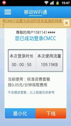 2、并且移动WiFi通还可以通过便捷的下线操作来实现下线功能,用户可以随时控制自己的上网状态。