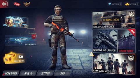 1、终极战斗打击是一款枪战动作射击游戏,采用了3D引擎制作,画面精美。