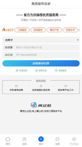 1、翼企旺app是一款功能强大的应用,为中小企业提供了便捷的资质办理服务。