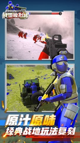 2、蓝方战地争夺战是一款富有刺激和挑战性的游戏,它不仅提供了多样化的兵种和大型武器,还有真实的战斗场景和丰富的任务和奖励。