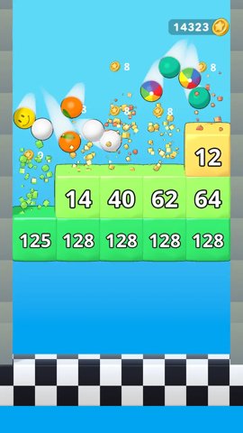 4、玩家可以通过合并相同等级的球来产生更大的球,增加砸碎地板的威力。