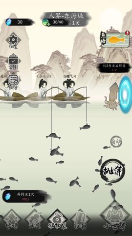 3、通过屏幕钓鱼可以赚取奖励,还可以使用各种秘籍和功法来收获更多的惊喜。