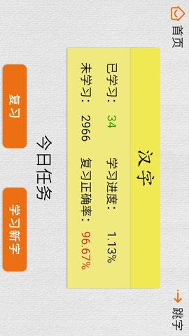 3、该应用实时显示已学习字数和复习正确率,让用户能够清楚地了解自己的学习进度和掌握程度,做到心中有数。