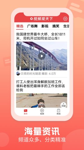 视频观天下是一款应用,提供最新最全的视频资讯,涵盖各个领域,包括新闻、科技、娱乐、财经等,满足不同用户的需求。