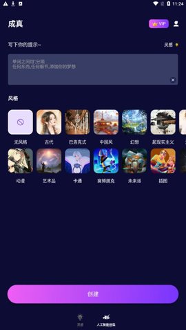4、而且这款软件还支持输入描述文字展现画面,让用户可以创作出属于自己的AI画作,无论是样的创意都可以实现。