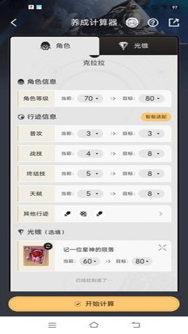2、崩坏星穹铁道养成计算器是一款非常值得尝试的好工具。