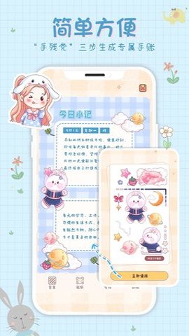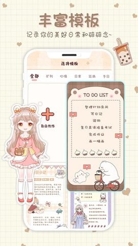 1、无论你是手残党还是手账小白,都无需担忧,因为小小手账拥有许多精致的模板,操作流程特别简单,只需三步即可完成一部美丽的作品。