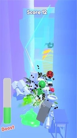 4、玩家需要控制着一个疯狂放屁的橡皮人往前奔跑,不停地进行破坏。