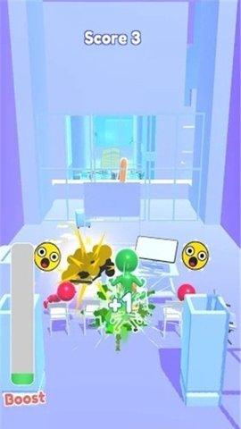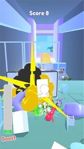 1、在放屁办公室游戏中,玩家需要控制着一个疯狂放屁的橡皮人往前奔跑,不停的进行破坏。