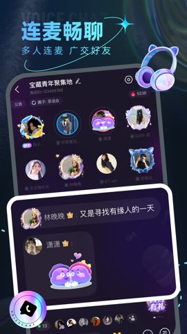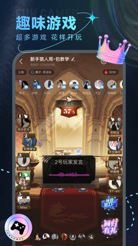 1、同时点击上麦更有超多有趣互动K歌互动,PIA戏,助眠陪聊等,让用户24小时快乐不断电。