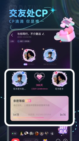 2、窝窝cp版还提供了一键匹配功能,让用户可以随时聊天、连麦,cp在线等你。