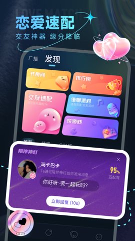 2、它提供了快速注册登录、一键匹配、丰富的房间类型、支持语音沟通等多种功能,满足用户的不同需求。