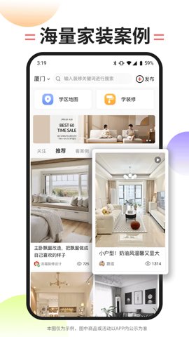 3、同时内伯还打造了一个充满想象力和创意的“家居圈子”,用户可以在这里解答装修难题,获取免费的预算报价和设计方案。