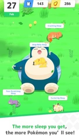 3、您与Snorlax的互动越多,与稀有睡眠风格的宝可梦相遇的机会就越大!当夜幕降临时,您可以继续享受宝可梦睡眠带来的休息和放松。