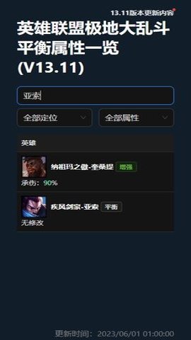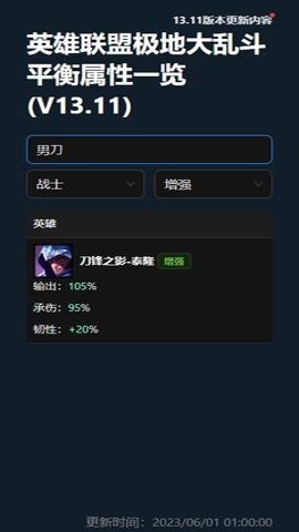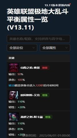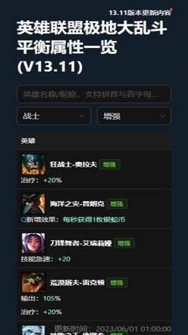 4、而且LOL极地大乱斗属性一览实时更新,能够跟随游戏版本进行数据更新。