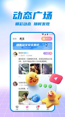 2、在广场上,用户可以浏览各种精彩的动态,发现更多有趣的生活动态。