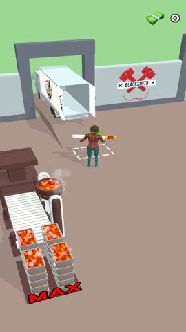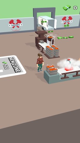 1、玩家扮演一名铁匠,需要搬运材料进行武器铸造,并将制作好的武器出售,以获取更多的资源和金币。