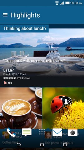 1、在使用HTC启动器时,用户可以从BlinkFeed或锁屏中获得附近餐馆、咖啡店和酒吧的建议。