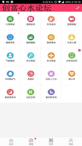 5、创富心水论坛是一款非常实用且丰富多样的应用,通过多种测试和解析功能,帮助用户更好地了解自己的内心世界和星座运势。