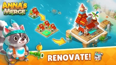 1、玩家可以通过合并不同的物品来获取资源,用于建造岛屿世界。